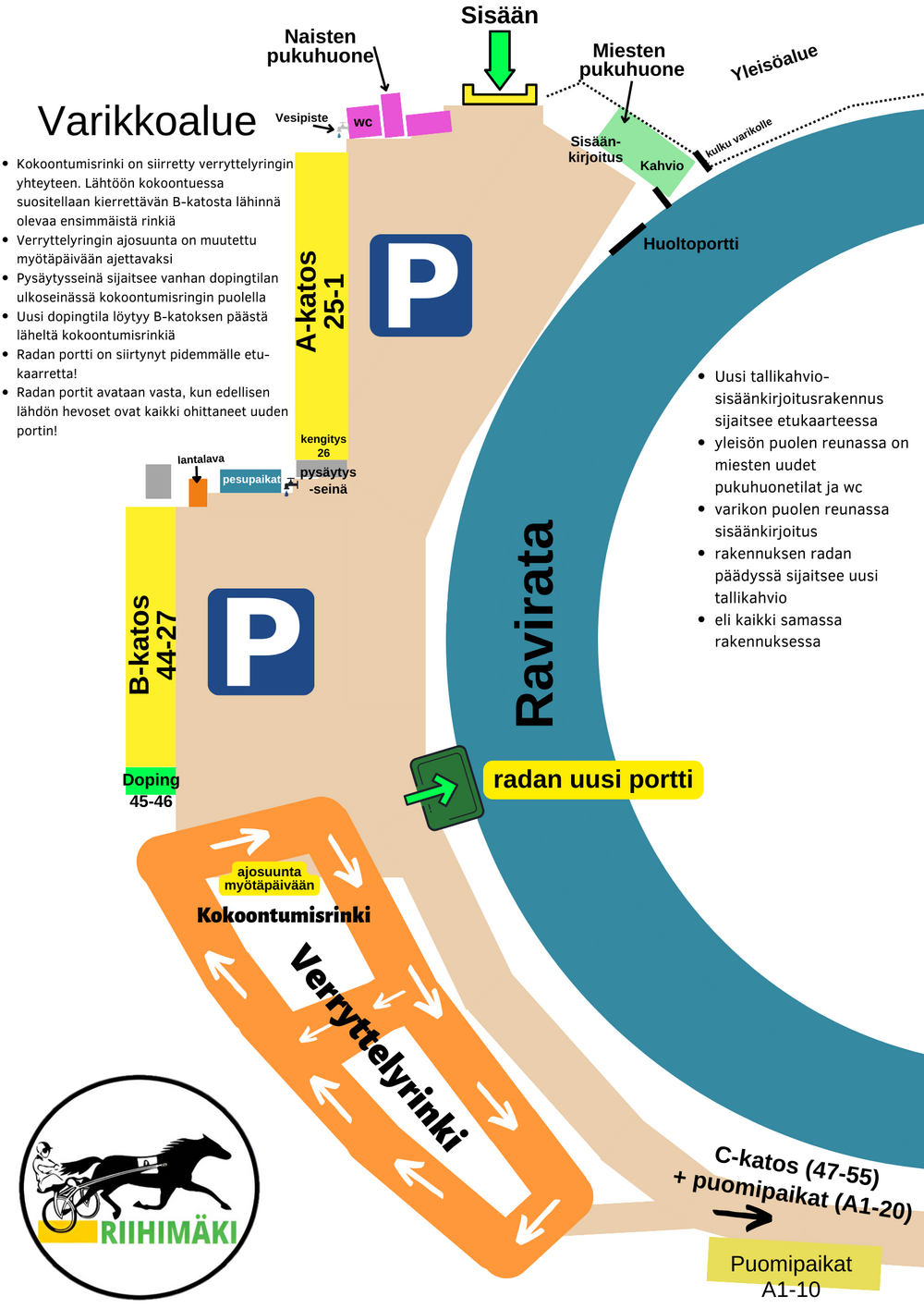 Huomioikaa, että radan portti on siirretty pidemmälle etukaarteeseen!